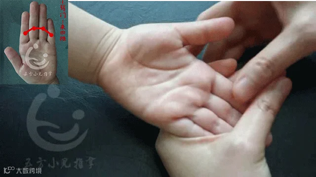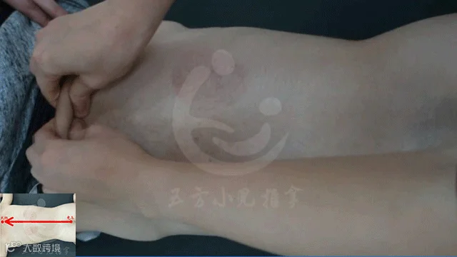 【操作】:两拇指自手腕横纹中点(总筋)向阳池、阴池两边分推。