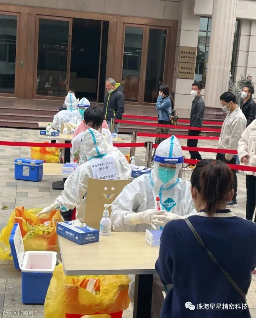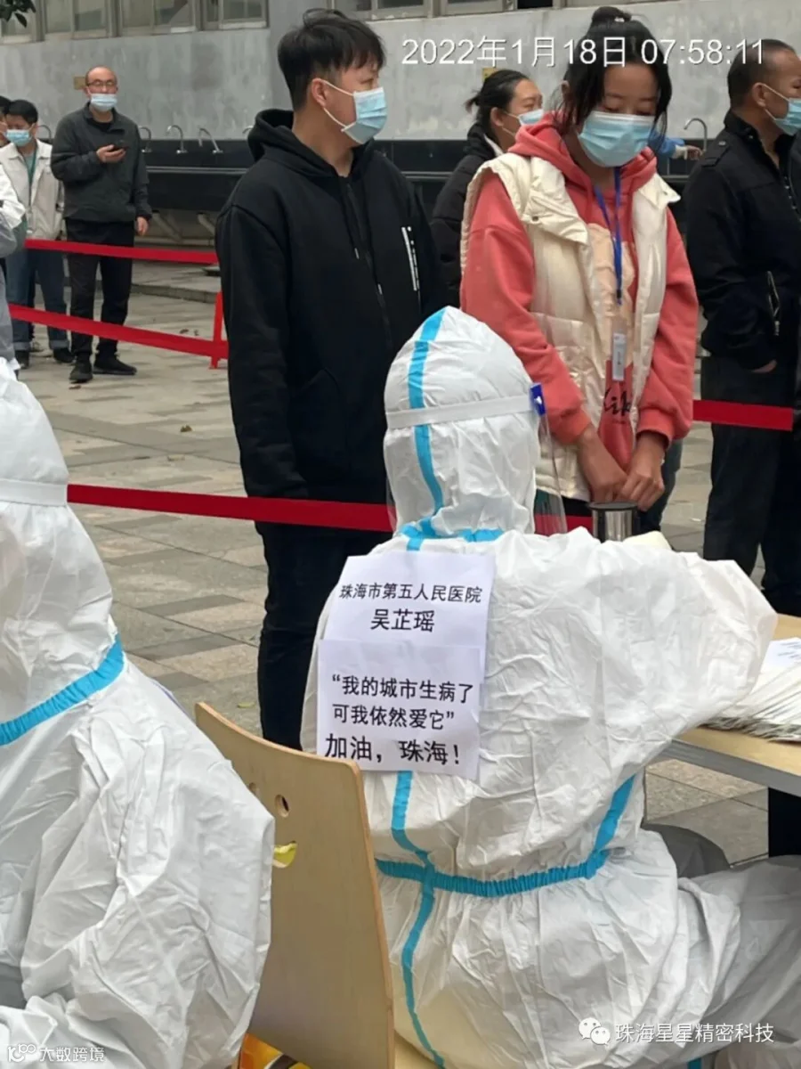 在这场全民战“疫”中,珠海星星科技全体员工,主动配合,听从指挥,有序检测,共同守护好我们的家园。