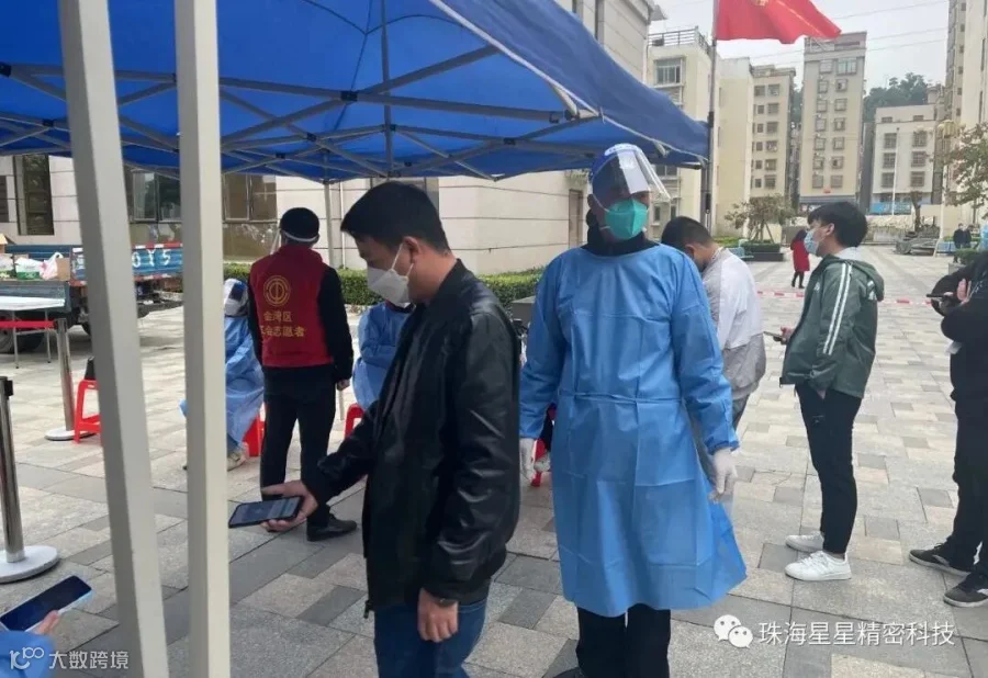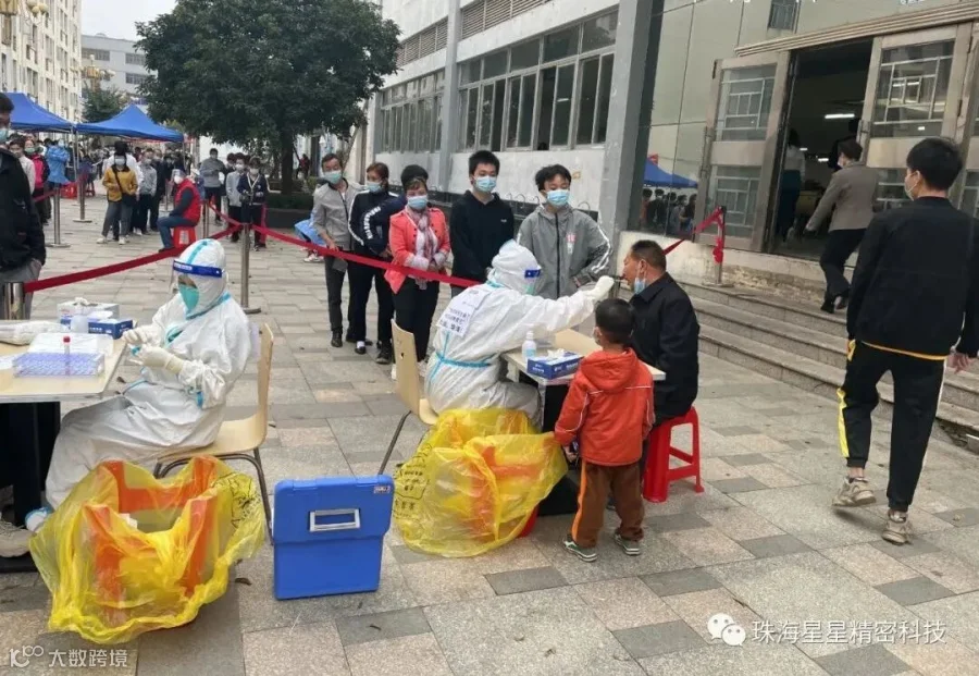 珠海星星科技的管理干部响应党和政府的号召,重视并向员工们宣导:测核酸、筛风险,对人对己都负责。公司的党员干部、工会干部以及行政人员,积极加入到疫情防控志愿