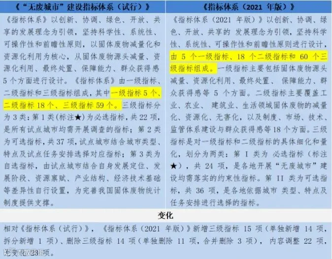 “无废城市”建设指标体系是国家生态文明发展指标体系和绿色发展指标体系的重要组成部分,是试点建设的重要引领,主要用于指导试点城市识别工作重点、明确试点建设目标和任务。同时,《指标体系》也鼓励试点城市在聚焦固体废物突出问题和试点重点任务的前提下,根据各地发展阶段、发展特征等实际情况,开展差异性目标设置和指标补充,为完善我国固体废物统计制度、建立“无废社会”指标提供支撑。