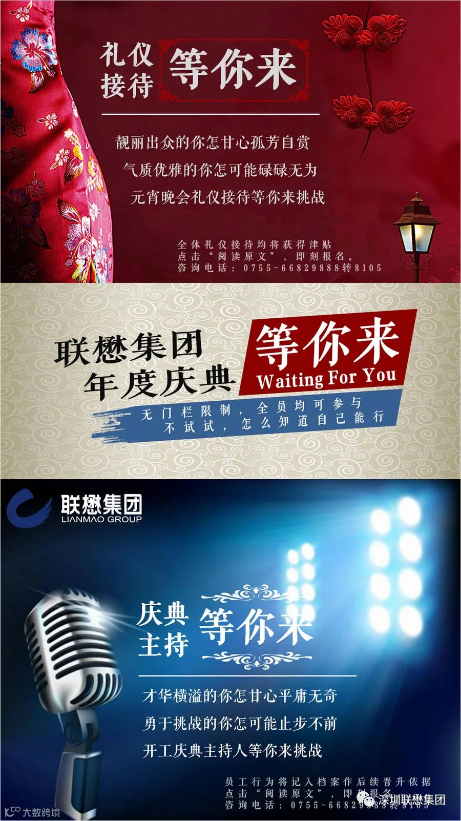 导读:联懋集团年度庆典即将袭来,现向全体联懋人征集,礼仪接待及开工庆典主持不管是靠脸吃饭,还是靠才华,都有你的份。有才华,有颜值,有担当的你,还在等什么呢?
