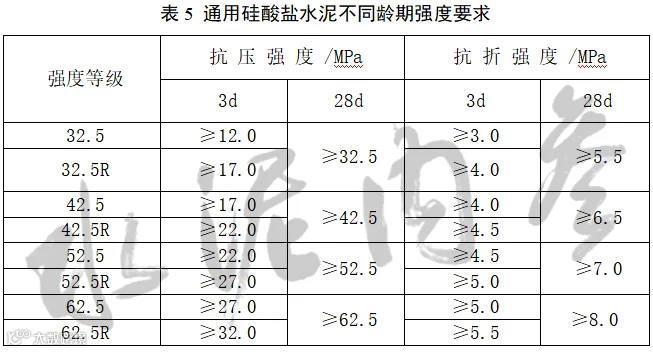 通用硅酸盐水泥不同龄期强度应符合表5的规定。