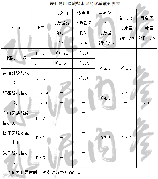 通用硅酸盐水泥的组分应符合表1、表2和表3的规定。