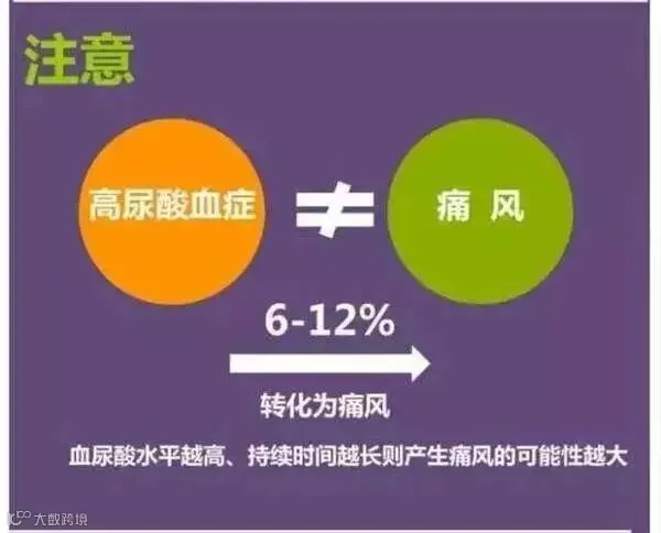 高尿酸血症患者与正常人相比,各类严重疾病的患病率更高,血尿酸每升高60MOL/L,死亡风险男性增高48%,女性增高126%。