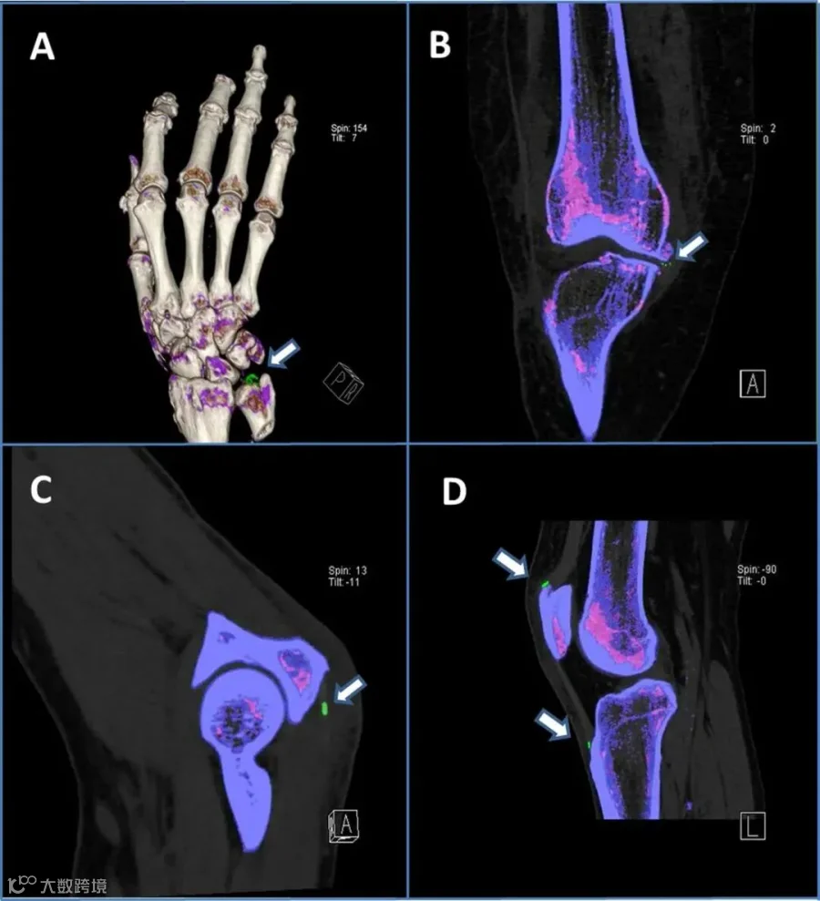它可以准确检测出尿酸盐晶体位置,同时可测量尿酸盐的体积,可以作为痛风的筛查和诊断工具。