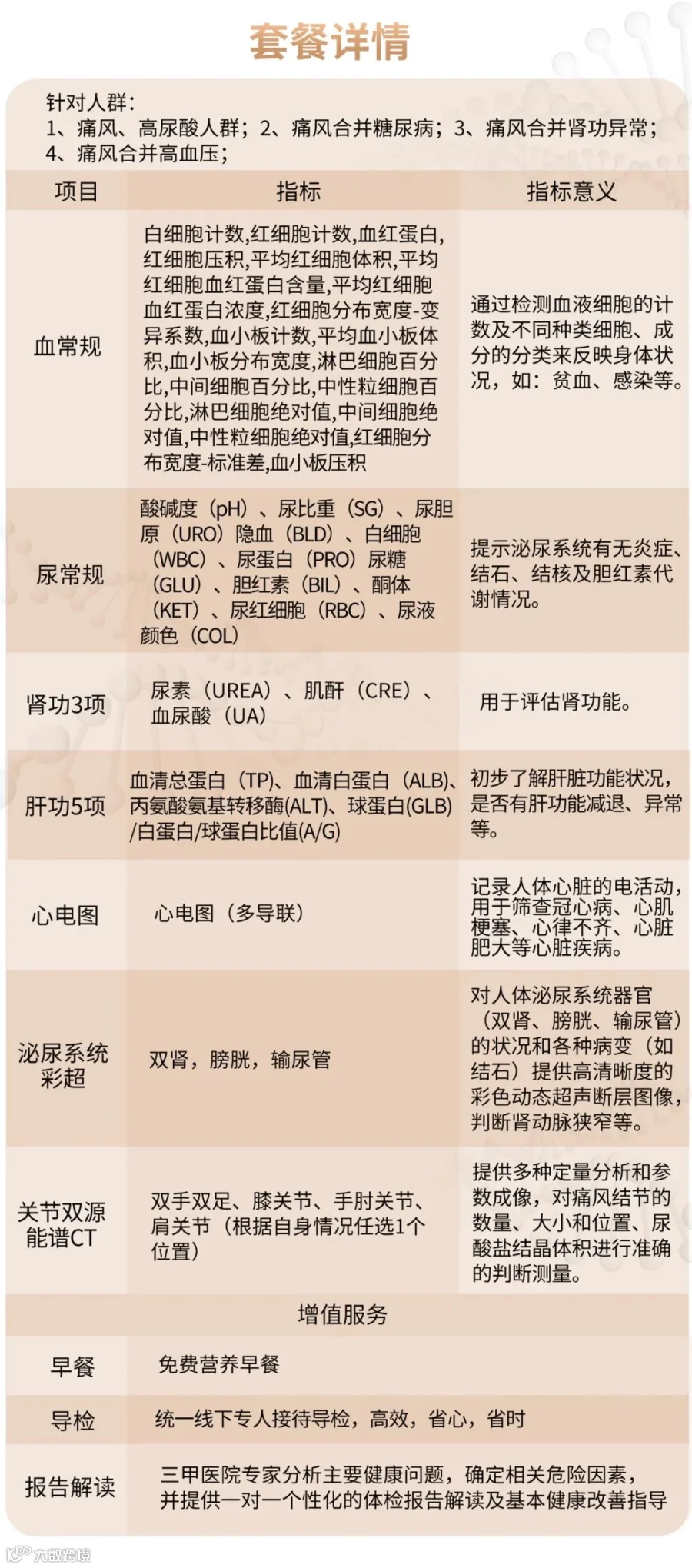那有没有适合高尿酸/痛风患者的、价格实惠的全面检查?答案是:有!