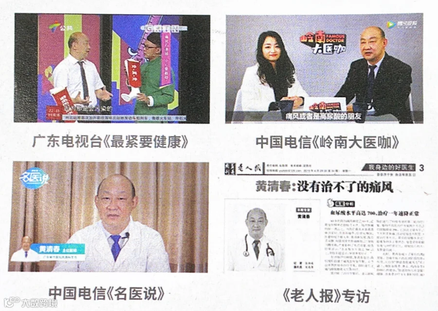 黄主任不仅专长于中西医结合治疗风湿疾病,荣获医疗科技成果二等奖、三等奖等奖项,还发表过70余篇论文,编写出版过医学专著6部......经他诊治的病人数不胜数,更是各大电视媒体力邀的痛风防治专家!