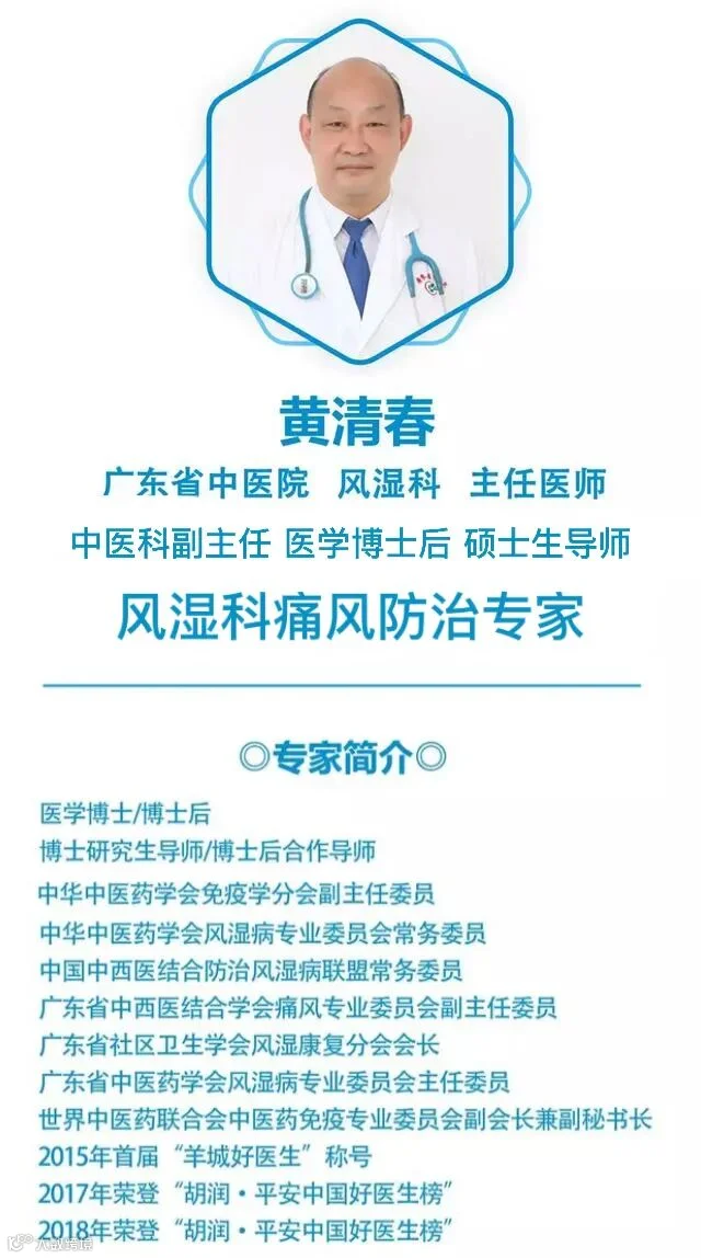 不仅如此,我们的解读专家还是三甲医院广东省中医院风湿科主任黄清春主任!