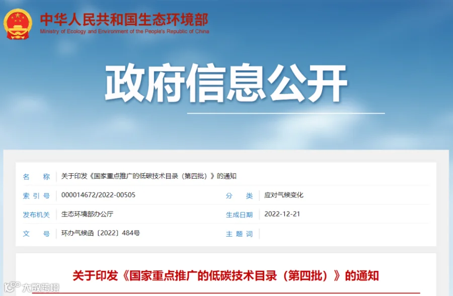 为贯彻落实党的二十大精神,大力支持低碳技术应用和推广,促进碳达峰碳中和目标实现,我部组织征集并筛选出一批先进低碳技术,编制了《国家重点推广的低碳技术目录(第四批)》,包括6类共35项低碳技术,现印发给你们。