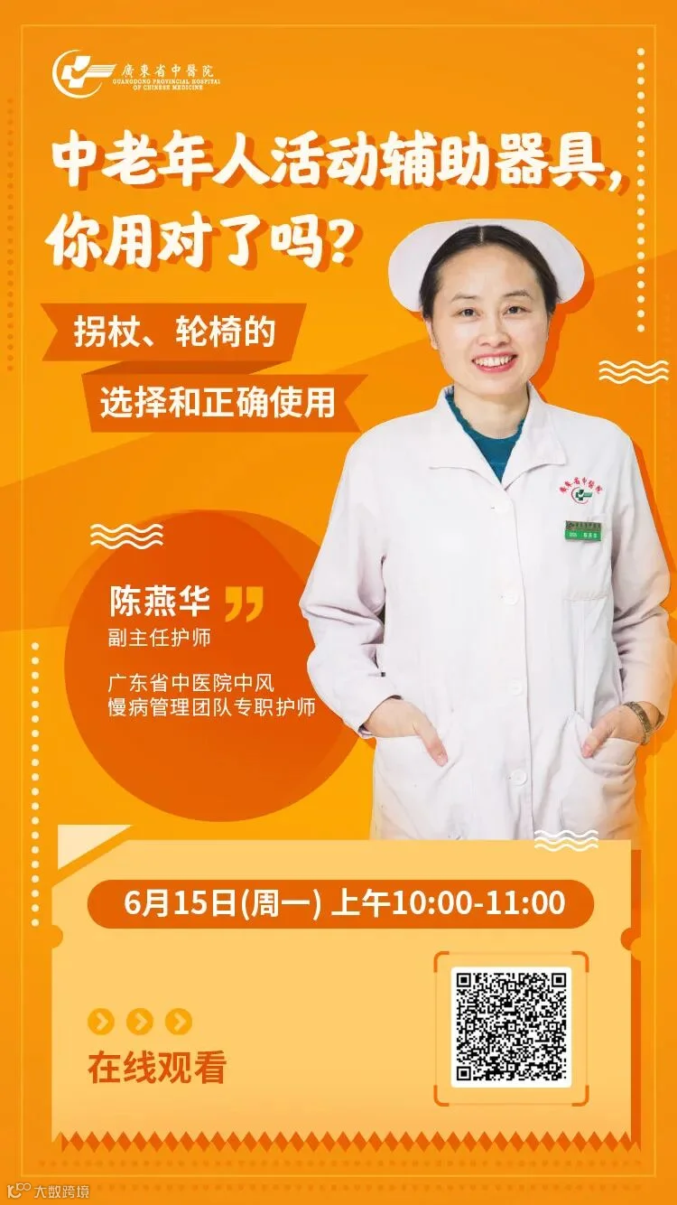 这次讲座中,陈燕华主任会为大家讲解如何选择轮椅、拐杖等工具,以及正确的使用方法和使用中的注意事项,现场还有答疑互动环节哦!