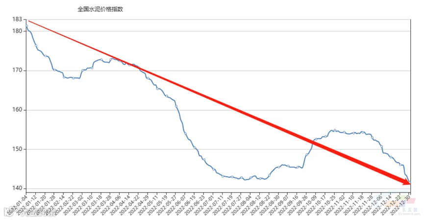 在需求大幅下滑背景下,2022年国内水泥市场行情持续低迷。中国水泥网数据显示,去年初至年末,全国水泥价格指数(CEMPI)下跌40点,跌幅超过20%,全年行情“旺季不旺,淡季更淡”。
