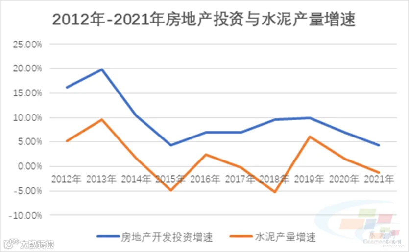 过去十年房地产投资增速与水泥产量基本同步