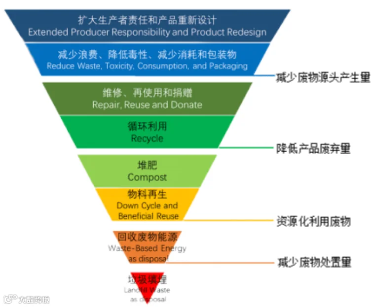 经过三十多年的发展演化,“无废”理念从注重末端治理提高回收利用率转变为注重源头减量和过程再使用的“废物倒金字塔”新型管理理念。许多西方国家的城镇和机构将“零垃圾”目标纳入其垃圾管理战略,“无废城市”概念便被作为城市垃圾管理和垃圾减量的终极目标。