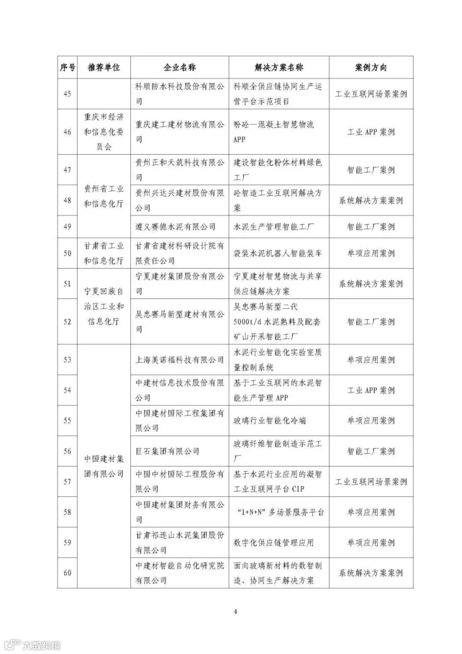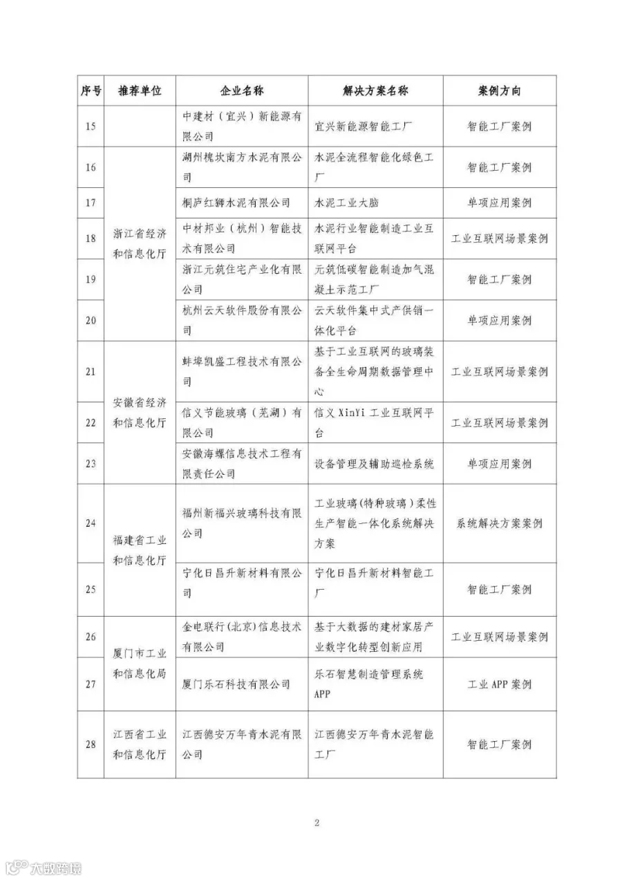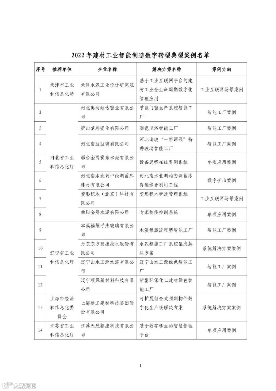 近日,经地方推荐、专家评审,原材料工业司发布2022年60个建材工业智能制造数字转型典型案例,涵盖信息技术供应商、系统解决方案、工业互联网场景、工业APP、智能工厂、数字矿山、单项应用等7个方向。发布案例是为了落实《建材工业智能制造数字转型行动计划(2021-2023年)》(工信厅原[2020]39号),在行业内形成一批可复制、可推广的成果,宣传推广经验做法,推动建材工业与新一代信息技术在更广范围、更深程度、更高水平上实现融合发展。这些案例具有一定的代表性,为建材工业智能制造提供了有益探索。