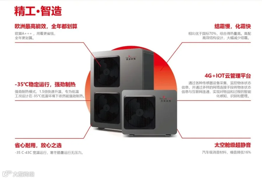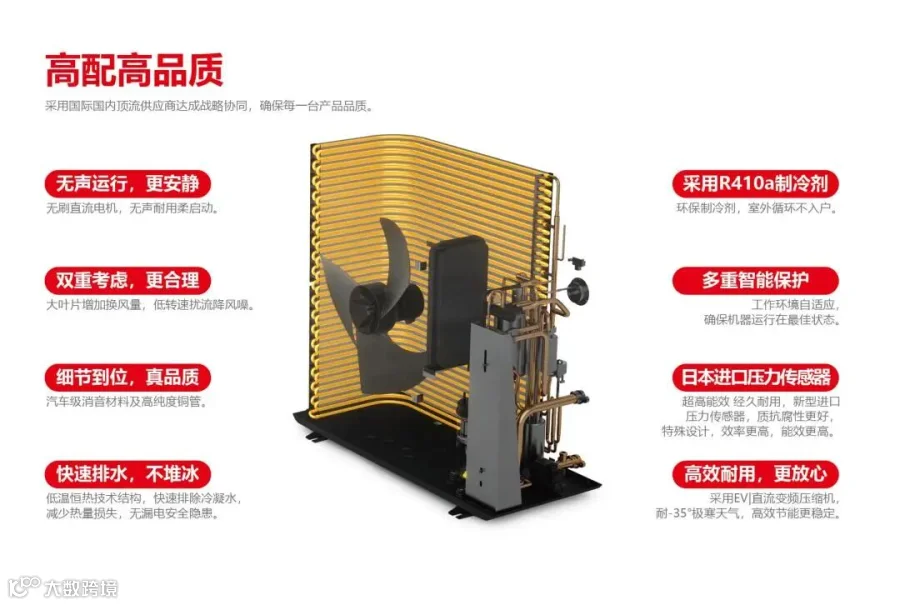 喷气增焓与智能除霜技术确保-20℃环境下稳定运行,高效制热,能效比(cop)保持在2.0以上。。