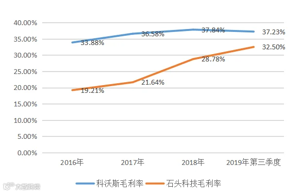 从毛利率来看,科沃斯公司毛利率多年来稳中有进,2017年到2019年三季度毛利率为36.58%、37.84%、37.23%,公司毛利率水平稳定。石头科技毛利率整体低于科沃斯,不过公司成长性良好,毛利率逐年增长,在逐步靠近科沃斯毛利率水平。公司2016年至2019年第三季度,毛利率分别为19.21%、21.64%、28.79%和32.50%。