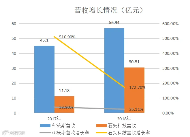 公司业绩最近两年大幅增长,其中石头科技2017年扭亏为盈。科沃斯2017年至2018年营收分别为45.51亿元、56.94 亿元,同比增长为38.9%、25.11%。2017年至2018年公司归母净利润分别为3.75亿元、4.85亿元,同比分别增长636.6%、29.13%。石头科技最近两年呈现爆发式增长,营收增长速度高于科沃斯。2017至2018年营收11.18亿元、30.51亿元,同比增长510.9%、172.7%,归属于上市公司股东的净利润分别为6699万元、3.07亿元,同比增长696.5%、359.1%。
