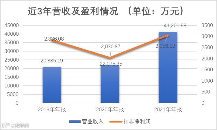 年报披露,公司2021年营收4.12亿元,较上年大幅增长86.64%。近三年,营收从2019年2.1亿增长至2021年4.12亿,三年几乎实现营收翻番。扣非净利润方面,公司近三年同步实现快速增长,2021年度扣非净利润为3056万,增速为50.49%。公司盈利能力不断增强。