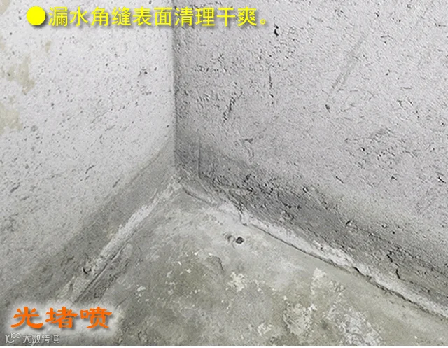 ≥5mm缝隙要先在缝隙上粘贴上光堵嵌缝网,然后再向嵌缝网和网内缝隙内喷射,60min再喷一次完成,夏天表固60min,终固24h。