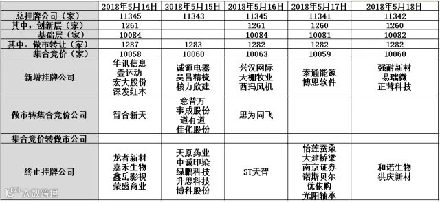 截至5月18日收市,本周5个交易日,新增挂牌公司15家,本周挂牌公司总数达11342家。