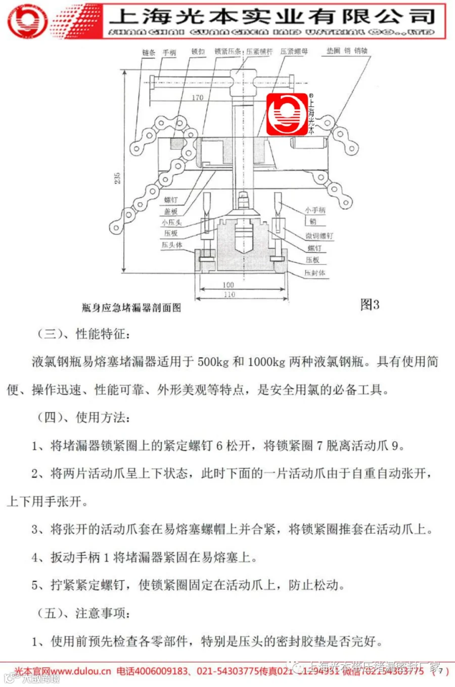 5、应急堵漏器收紧链条;