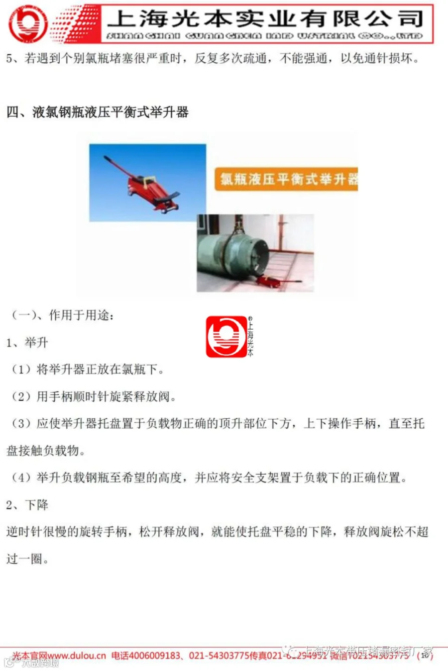 1、氯瓶液压平衡式举升器;