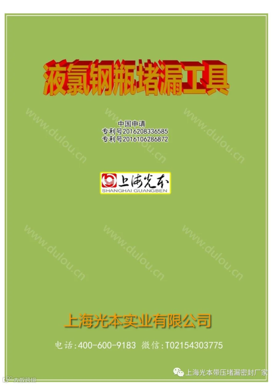 光堵牌 液氯钢瓶堵漏工具中国专利号2016208336585 和2016106286872
