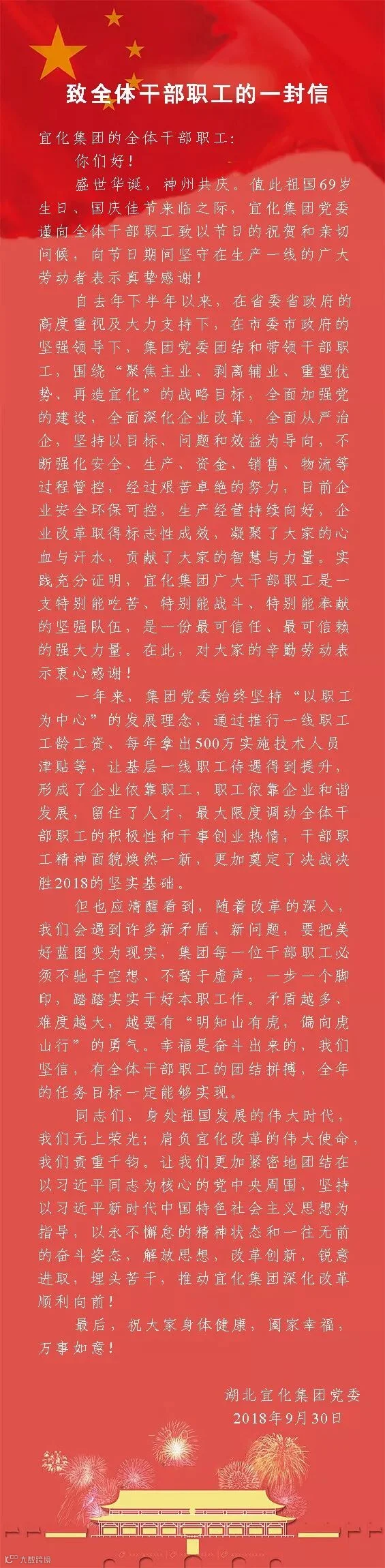 致全体干部职工的一封信