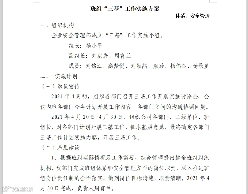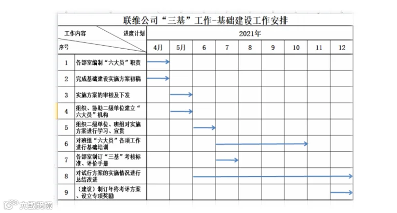 为把“三基建设”落到实处,不断提升公司整体管理水平,保障公司生产经营能力稳步提高,促使“三基建设”规范化、常态化、科学化。公司各部门积极行动起来在认真研讨、座谈交流,广泛征求基层的意见和建议的基础上,汇总整理形成联维公司“三基”工作“实施方案,其主要围绕“基层建设、基础管理、基本功训练”三大维度,根据每个维度制定了详实的安排和工作计划,有力保障了“三基”工作的推进力和执行力。
