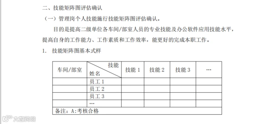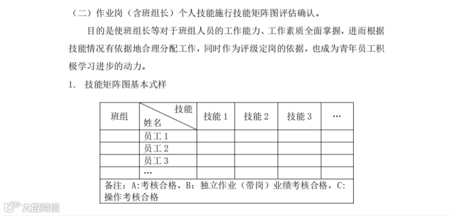 以基本训练为根本。加强以岗位练兵为主要内容的基本功训练,进一步规范岗位练兵的内容、频次、格式、 存档、使用等管理要求。使之更科学化、系统化、规范化;实施技能矩阵图评估确认,促进岗位技能学习积极性;组织编写贴合联维公司实际工作的精品专业课件,为提高公司员工专业技能提供助力。