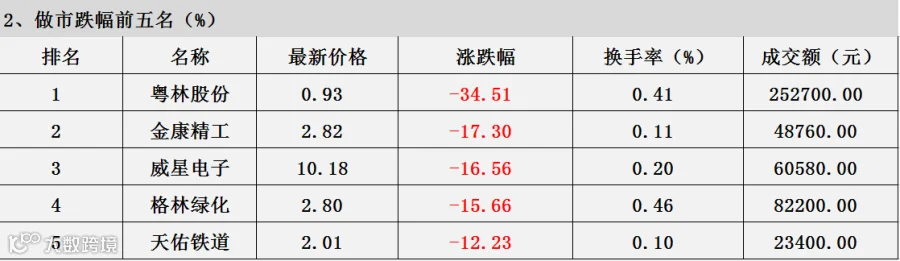 涨跌幅前五