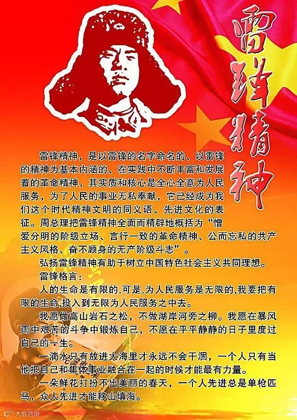 雷锋——你的名字就是中华民族的精神财富,她教育着一代又一代的人成长,她是永不过时、永不褪色的鲜红旗帜,指引着我们生命的航向。人人可成雷锋,中国需要雷锋,从我做起,争做新时代雷锋。