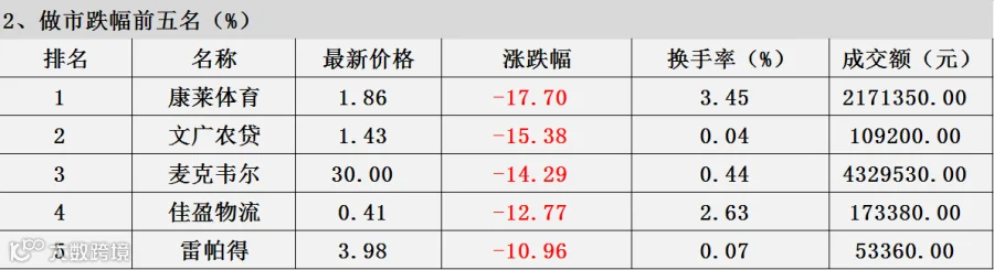 3.做市涨跌幅统计