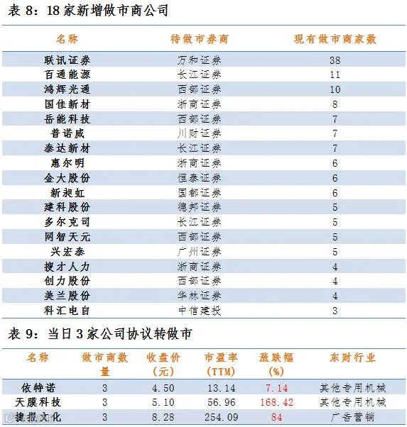 3家协议转做市,18家公司新增做市商