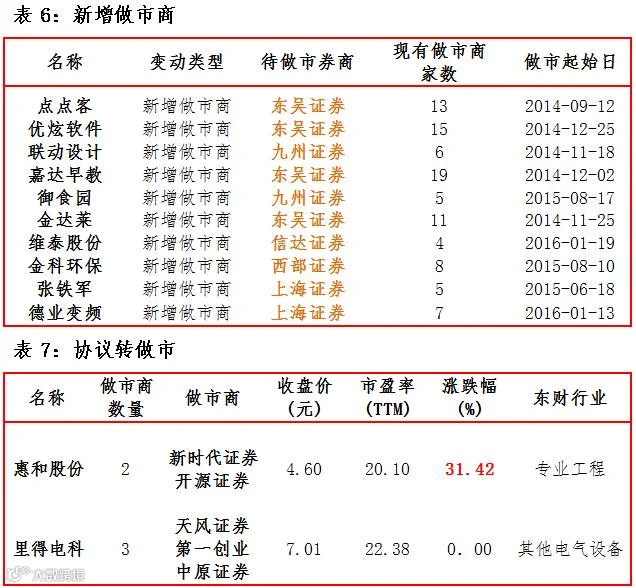10家公司新增做市商 2家公司协议转做市