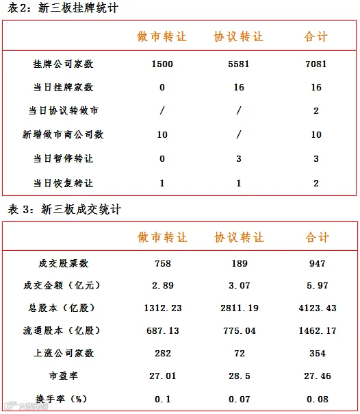 新三板成交概况