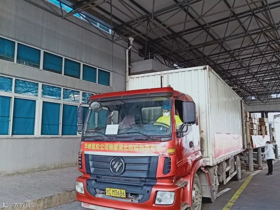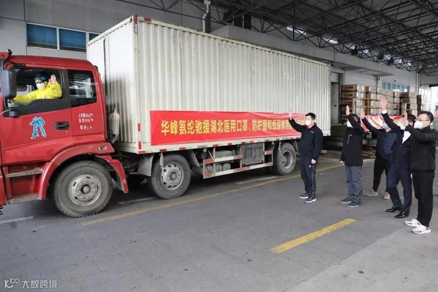 1月31日下午2:30,华峰氨纶工业园区第一批无偿捐赠的10吨装满医护用品生产原料的物资专车启程开往湖北。