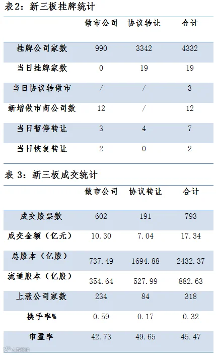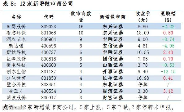 表12:昨日7家公司新增发行股份并挂牌转让: