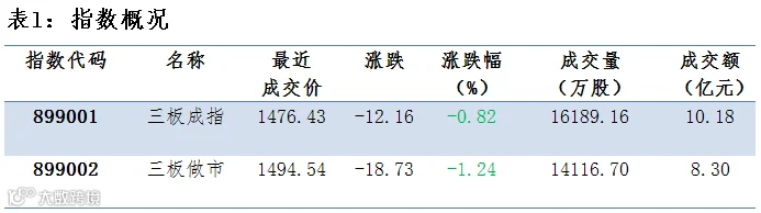 昨日三板做市指数早盘开盘小幅拉伸后便一路下行直至尾盘收尾,难守1500关口,收报1494.54点,跌18.73点,跌幅1.24%。