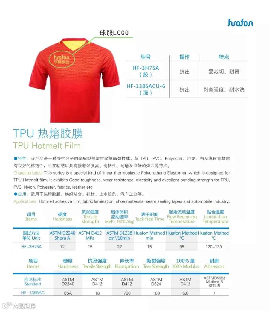 Hello,我是3号选手,每支球队都少不了的球服LOGO中的面和胶都有我的身影。我的存在,让球迷们在面对面孔差不多的球员时不至于一脸蒙圈。球服LOGO由我制成的面易裁切、耐黄变,而采用我做成的胶剥离强度高、耐水洗。