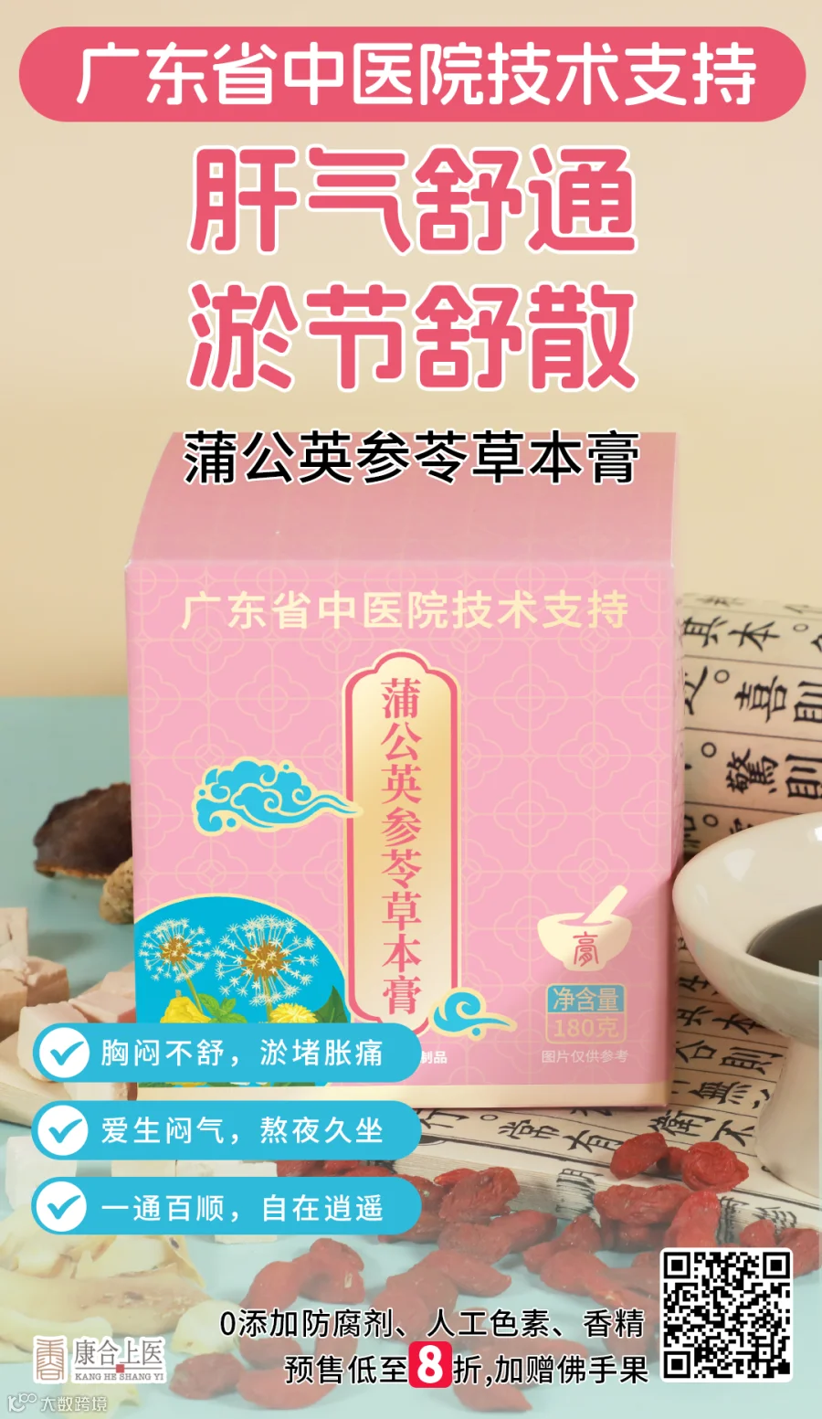 蒲公英参苓草本膏,由广东省中医院技术支持生产,严选11味优质食材科学配伍,正是为有以上烦恼的女性量身定制,温和调理,不猛伐、不伤正,贴合春日养肝需求,温水冲调即可饮用。