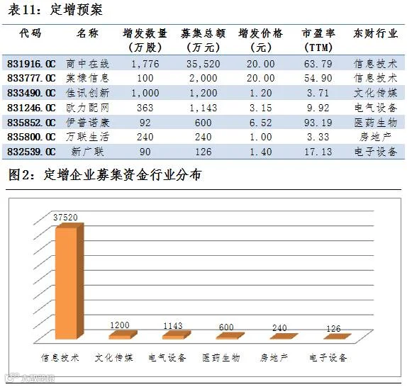 点评:2月17日,共有7家公司公布定增预案,总增发股数3661万股,共募集资金4.08亿元。1家公司募集资金超过1亿元,募集资金最大为商中在线,募集资金3.55亿元,总体来看,募集金额流向信息技术行业较多。