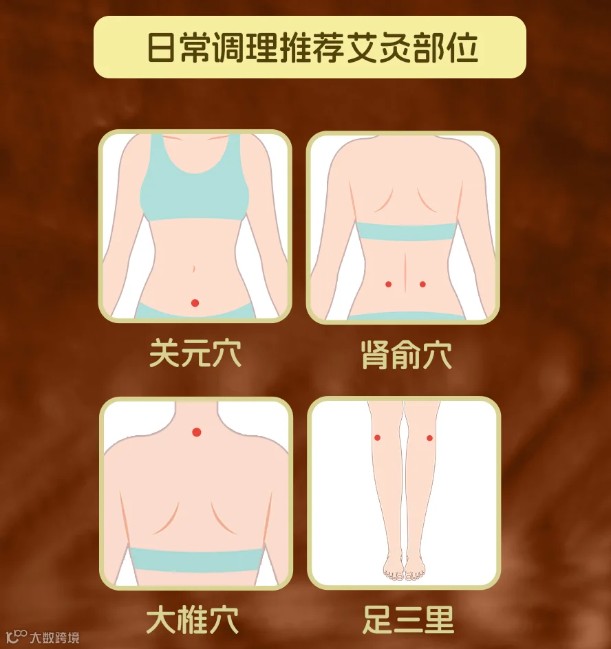 日常艾灸,推荐几个常用部位: