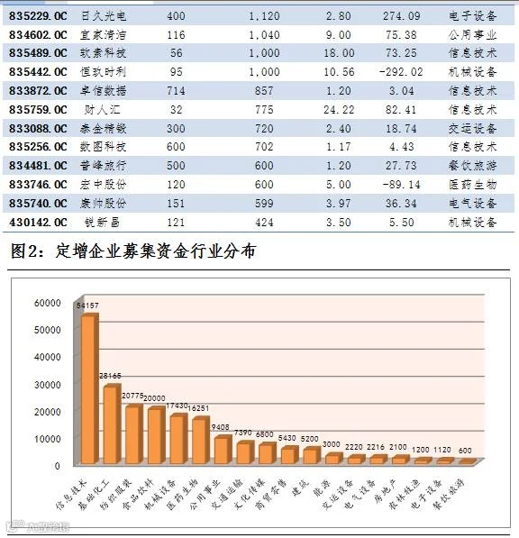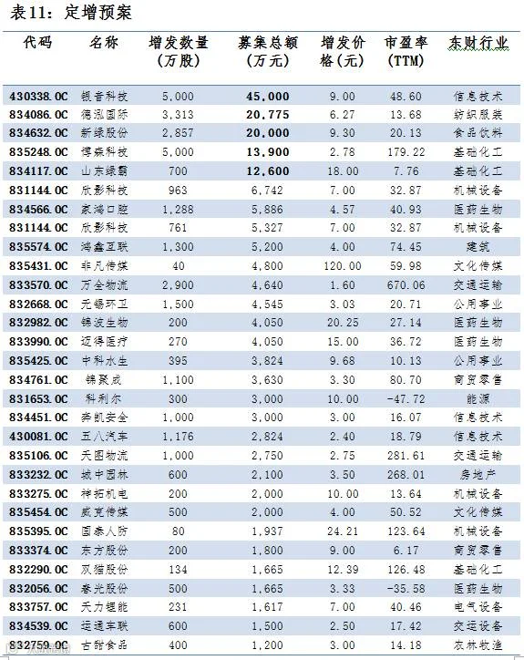 点评:2月5日,共有42家公司公布定增预案,总增发股数37,713万股,共募集资金20.34亿元。5家公司募集资金超过1亿元,募集资金最大为银音科技,募集资金4.5亿元,总体来看,募集金额流向信息技术、基础化工、纺织服装行业较多。