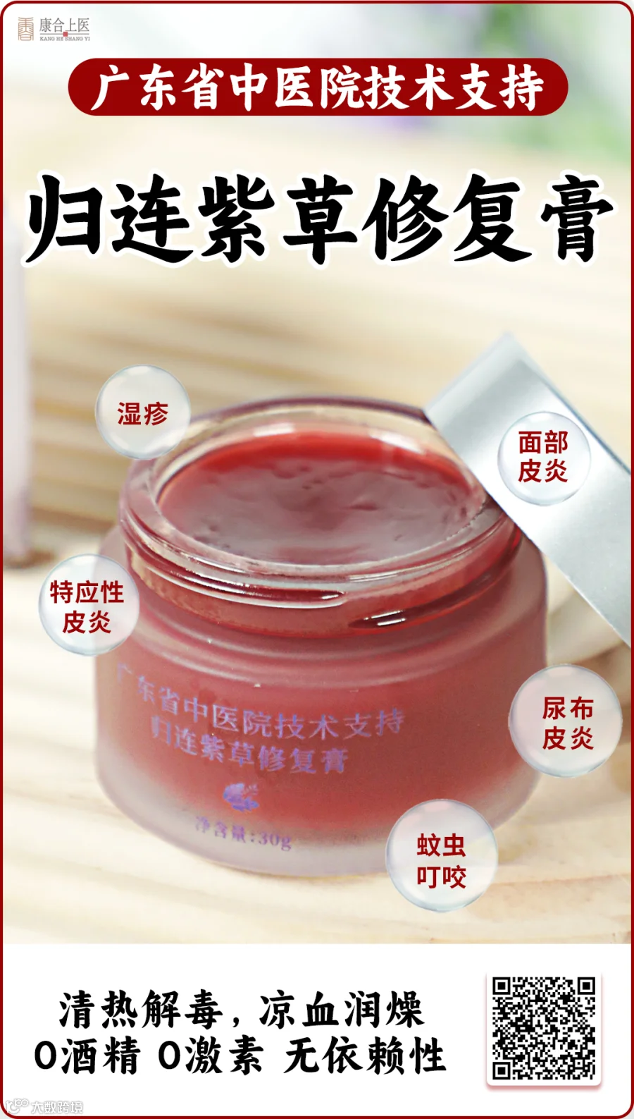 夏天湿疹、瘙痒反复发作很难受,激素药膏要慎用,大家可以选择广东省中医院技术支持,大学城皮肤科专家团队研发的【归连紫草修复膏】。方中含有清热凉血、活血透疹的紫草;补血活血、止痛、润燥的当归;清热燥湿、泻火解毒的黄连等中药材。