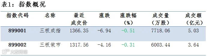 做市指数下跌 三板交投萎靡