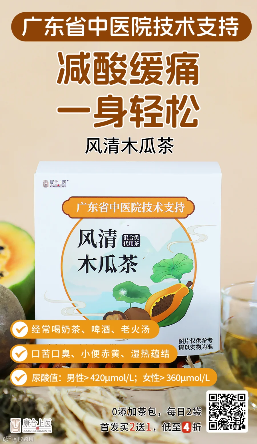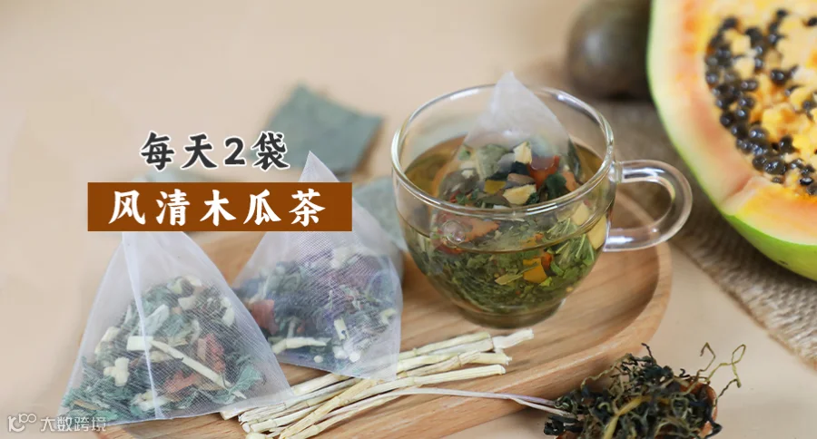 【风清木瓜茶】由广东省中医院技术支持生产,严选6味优质食材配伍:木瓜、罗汉果、荷叶、白茅根、薄荷、蒲公英,不添加香精、人工色素、防腐剂生产,特别制作成独立茶包,每次1~2袋,使用便捷,热水冲泡即可饮用。