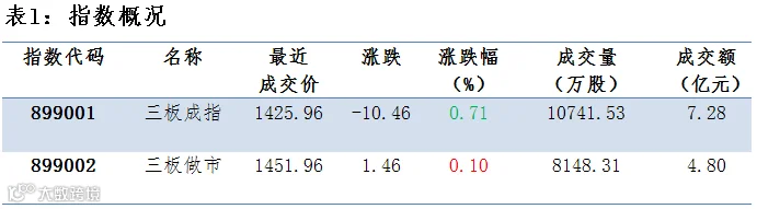 三板成交额微跌 做市指数维稳