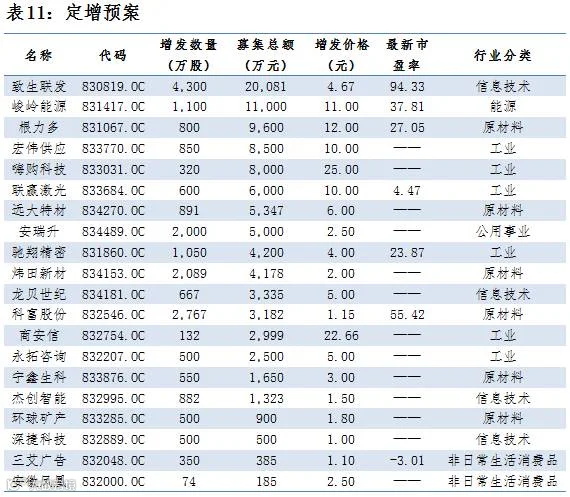 点评:12月8日,共有20家公司公布定增预案,总增发股数2.09亿股,共募集资金9.89亿元,2家公司募集资金超过1亿元,募集资金最大为致生联发,募集资金2亿元,总体来看,募集金额主要流向工业,占比33%。