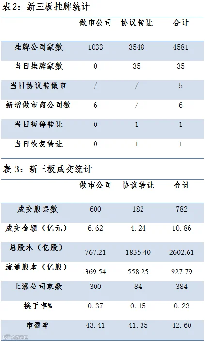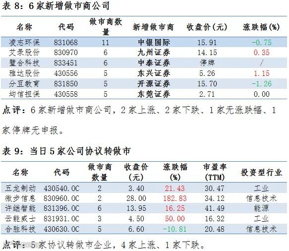 5家协议转做市,6家公司新增做市商